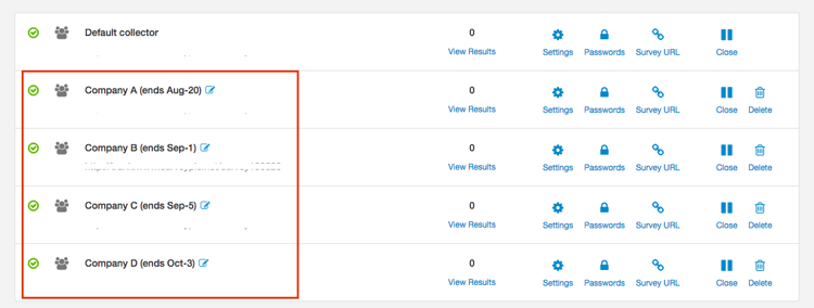 User background & requirements: John is working at a training institution that provides employee-training services for multiple companies. He wants to collect training feedbacks from all companies using a single survey but needs to view separate data from different companies from time to time so he can create custom training plans for each company.