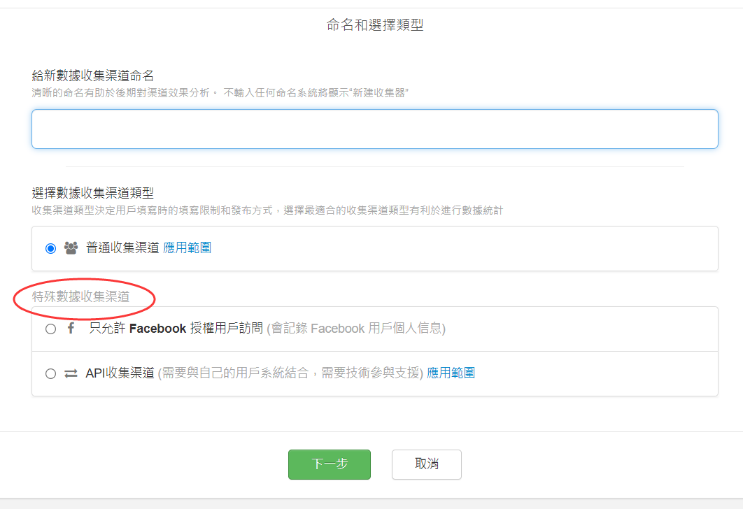除普通資料收集渠道之外,您還可以建立兩種特殊收集渠道。