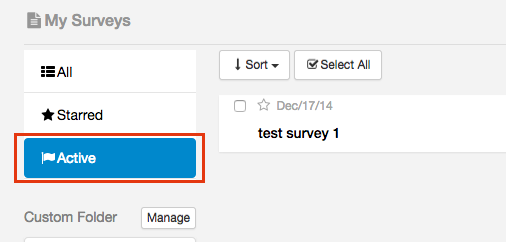 Surveys collected responses in the past 24 hours are called "Active surveys". You can easily find all surveys that had been active recently by click [Active] button on the left side of My surveys page.