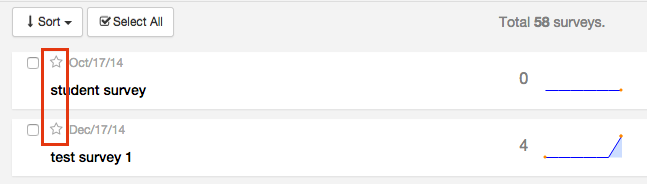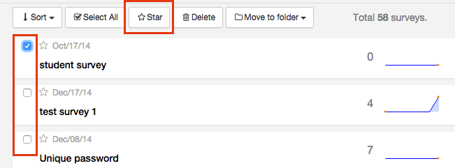 Select the survey need to be starred on My Surveys page and click [Star] button on the top of survey list.