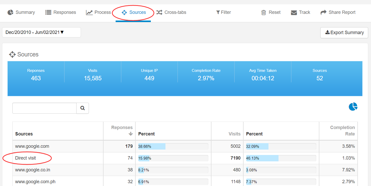 Source report tells you from where your respondents visit and take your survey.